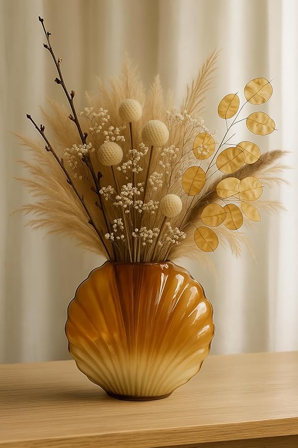 - Unique Shell Design, Elegant Ombre Gradient Seamlessly transitions from a rich amber hue to a soft, frosted white, blending naturally with neutral or earthy interiors.